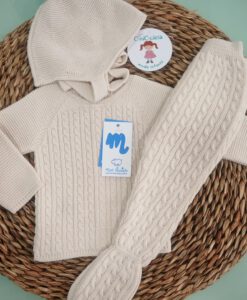 Mac Ilusión Conjunto 3p trencitas +gorro pompom natural