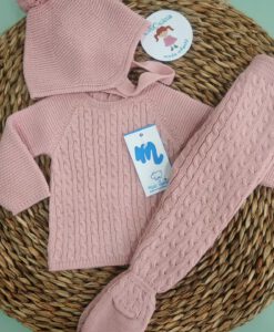Mac Ilusión Conjunto 3p trencitas +gorro pompom rosa vintage