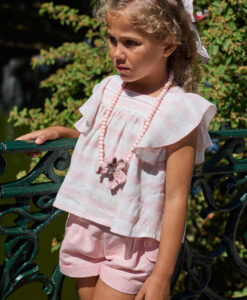 La Martinica Conjunto mini Martinica blusa muñequita + braga volante vichy camel
