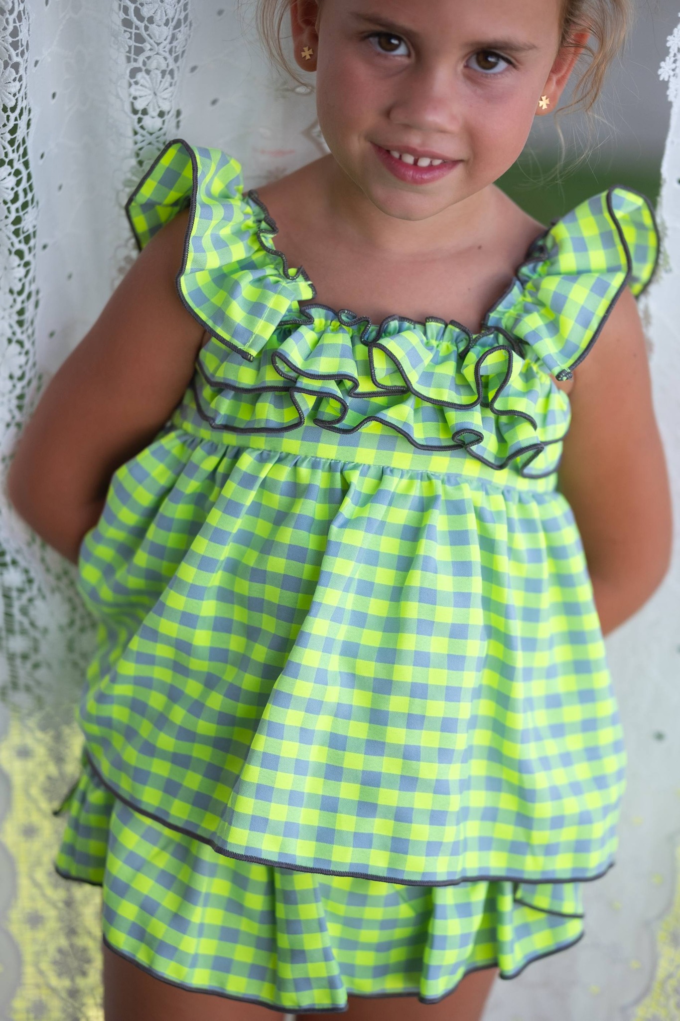 / Mon petit Jesusito vichy amarillo flúor y gris
