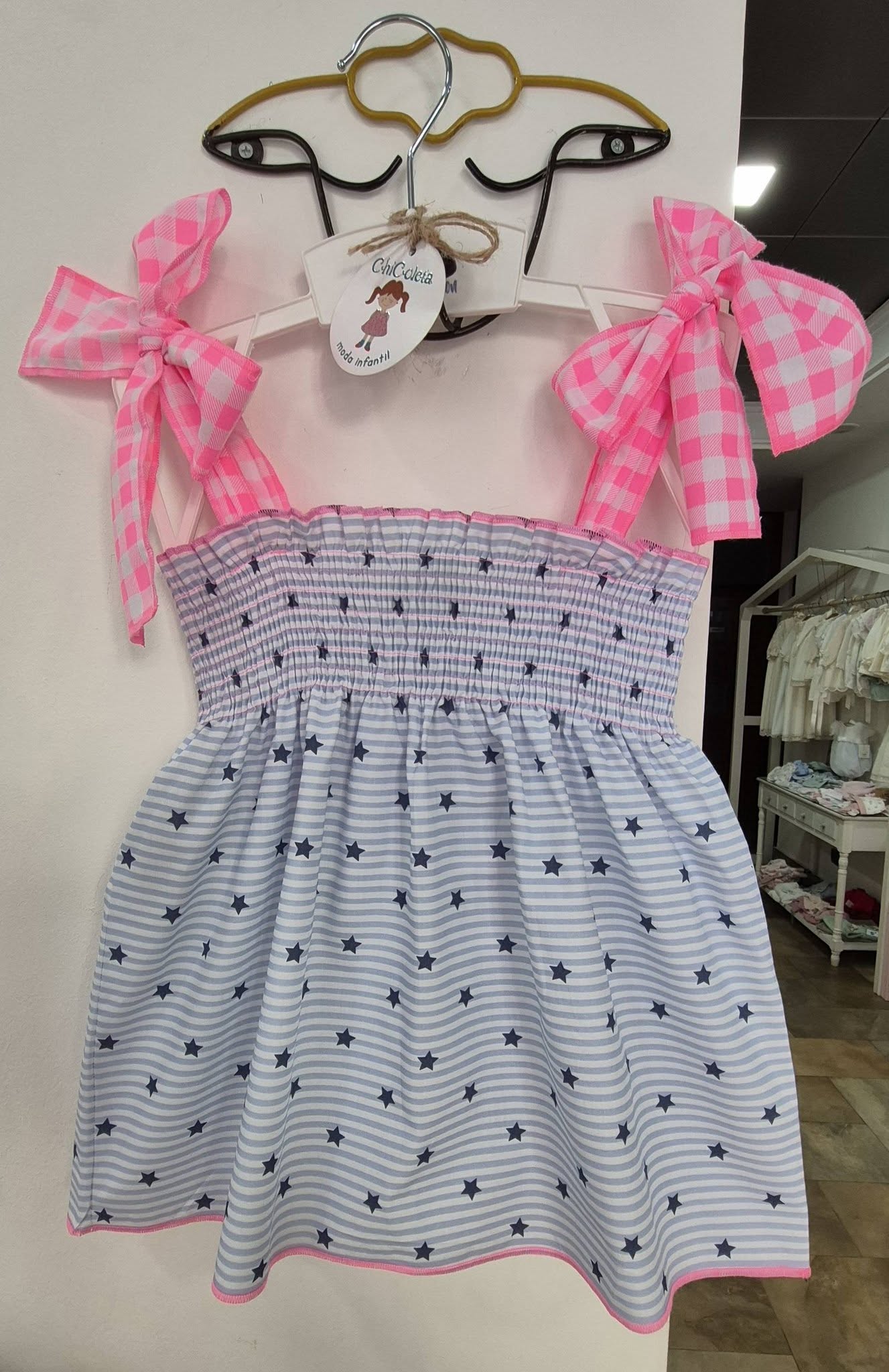 / Mon Petit Vestido rayas estrellitas con tirantes vichy fluor
